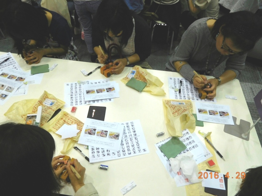 道刃物ブースでは毎年大好評のてん刻のワークショップを行います。