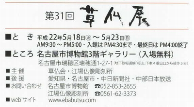 - 仏像彫刻展のお知らせ ~第31回仏像彫刻美術展~仏師・矢野公祥先生主催の仏像彫刻・仏教美術展 「第31回仏像彫刻美術展」が開催されます。 …