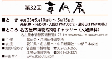 - 仏像彫刻展のお知らせ ~第31回仏像彫刻美術展~仏師・矢野公祥先生主催の仏像彫刻・仏教美術展 「第31回仏像彫刻美術展」が開催されます。 …