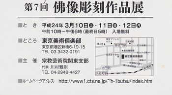 - 仏像彫刻展のお知らせ ~第31回仏像彫刻美術展~仏師・矢野公祥先生主催の仏像彫刻・仏教美術展 「第31回仏像彫刻美術展」が開催されます。 …