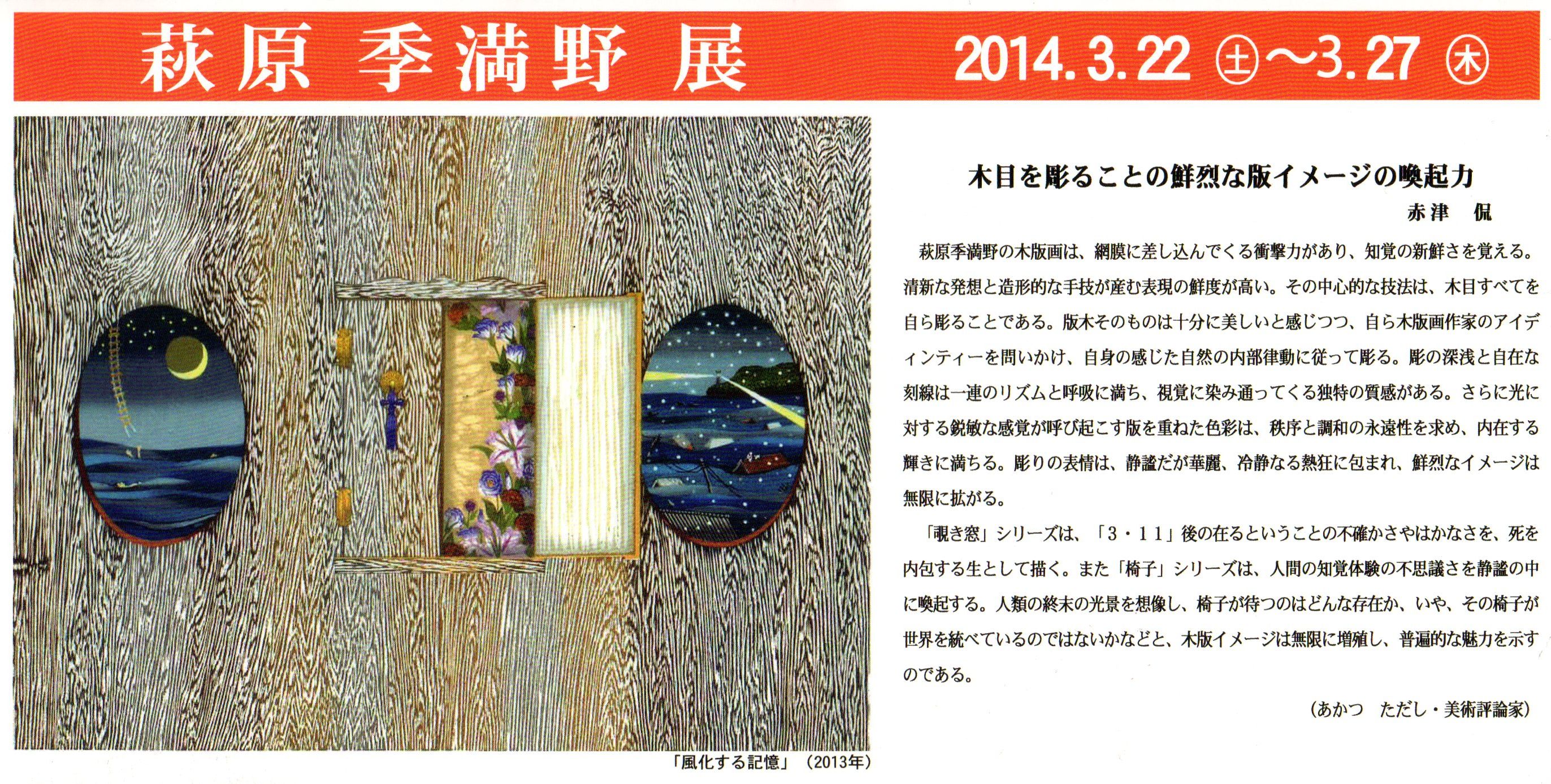 - 木版画作品展のお知らせ ~牧野 浩紀展~お世話になっております木版画家・牧野浩紀さんの作品展が開催されます。 会期は長めとなっておりますが、お早めにどうぞ。 …