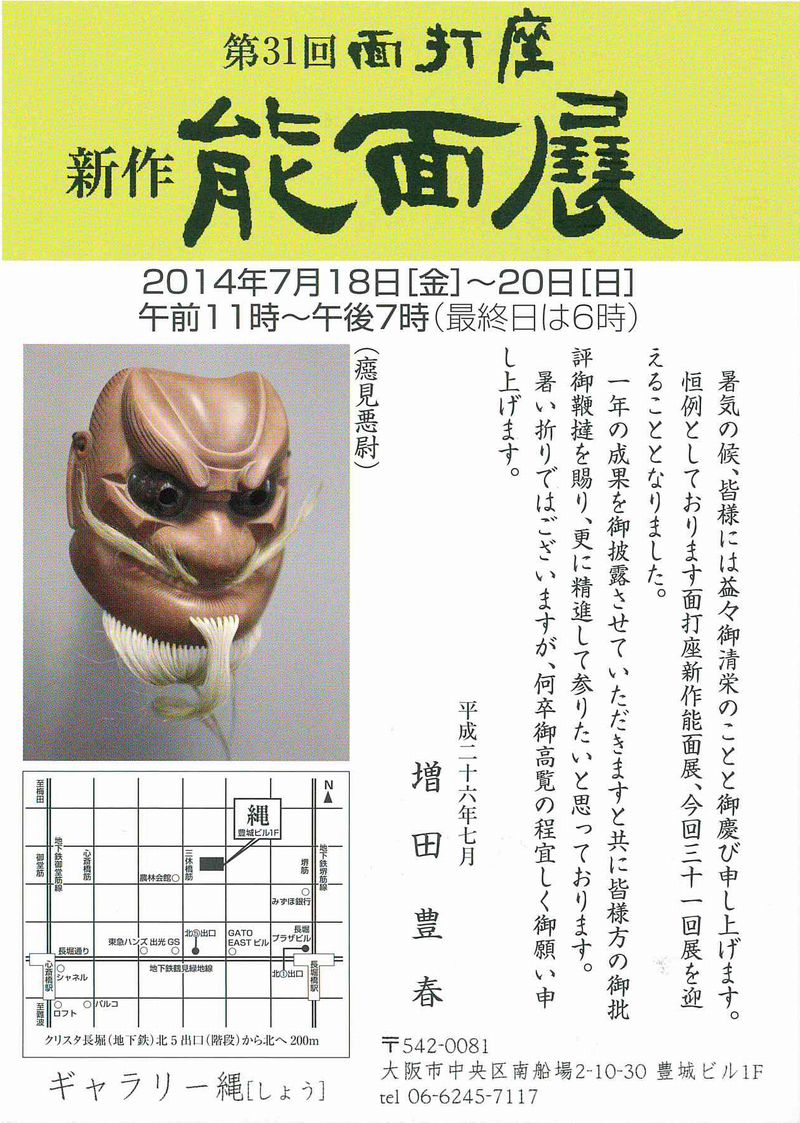 能面展のお知らせ ~第31回 面打座 新作能面展~