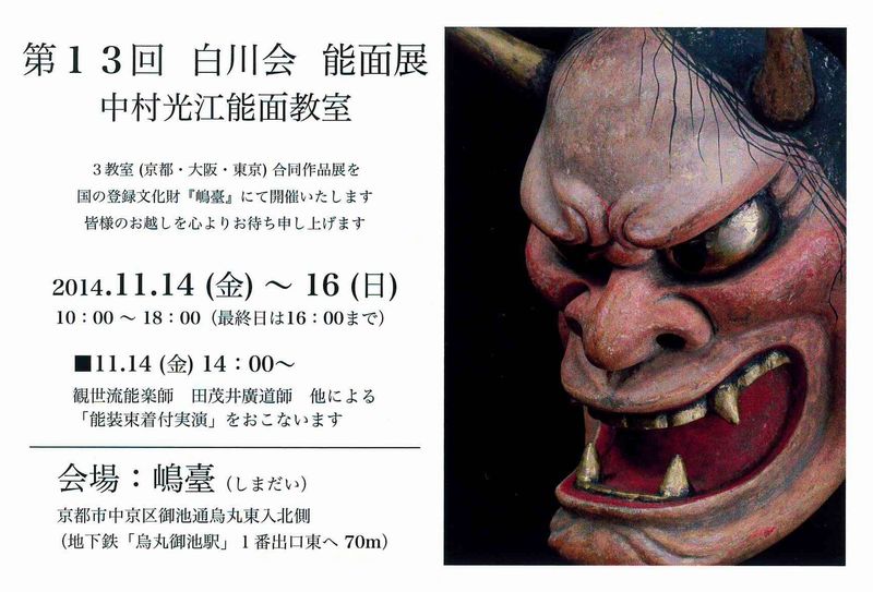 - 能面展のお知らせ ~第44回面友会能面展~第44回となる、面友会さんの能面展が開かれます。 …
