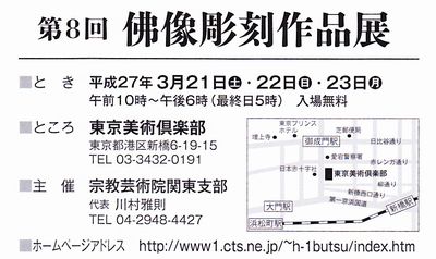- 仏像彫刻展のお知らせ ~第31回仏像彫刻美術展~仏師・矢野公祥先生主催の仏像彫刻・仏教美術展 「第31回仏像彫刻美術展」が開催されます。 …