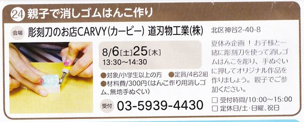 夏休み企画!お子様と一緒に彫刻刀を使って消しゴムはんこを彫り、