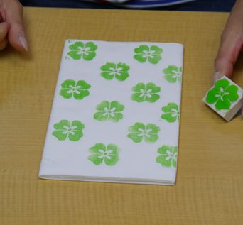 手ぬぐいに押してオリジナル作品を作りましょう。