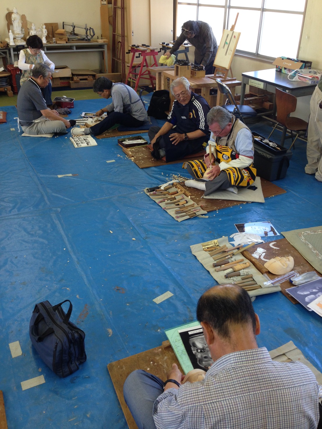 たくさんの生徒さんが、懸命に能面制作に打ち込んでおりました。