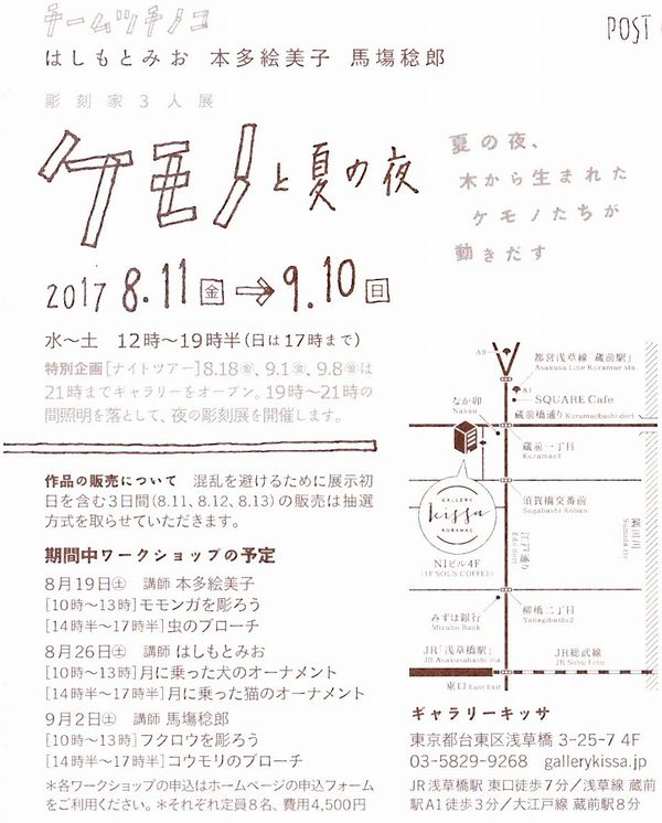 木彫展のお知らせ ~ケモノと夏の夜~