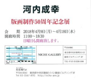 版画展の知らせ ~河内成幸版画制作50周年記念展~