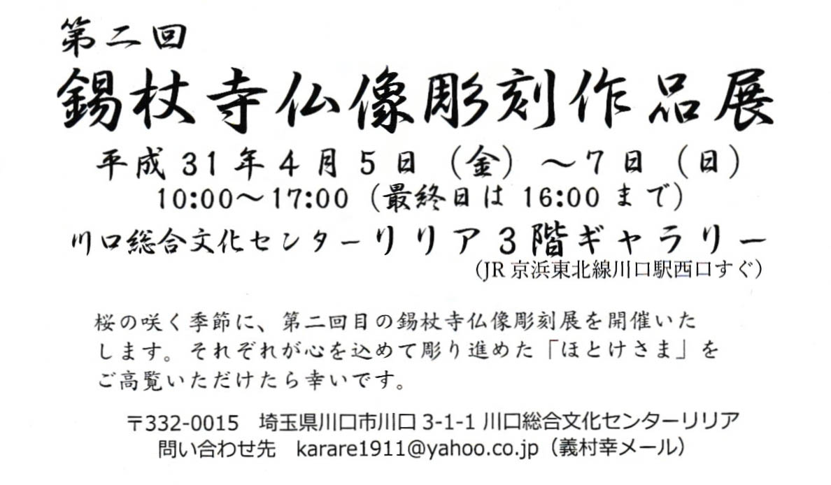 仏像彫刻教室展のお知らせ ~第二回錫杖寺仏像彫刻教室作品展~