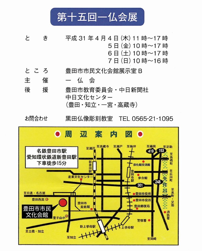 仏像彫刻展のお知らせ ~第15回 一仏会仏像祭り~