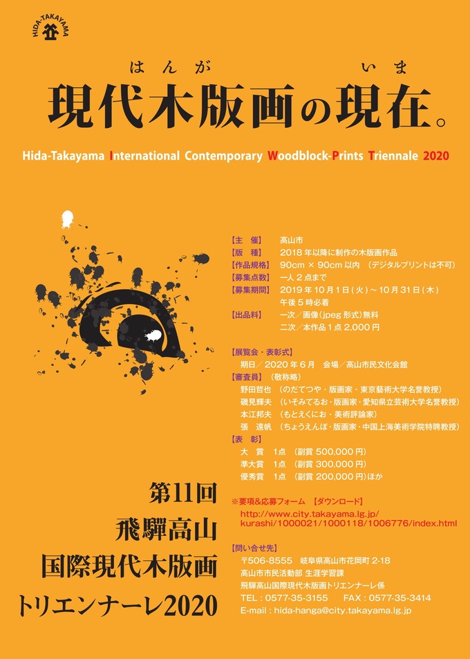 木版画展覧会作品募集のお知らせ ~第11回飛騨高山国際現在木版画トリエンナーレ2020~