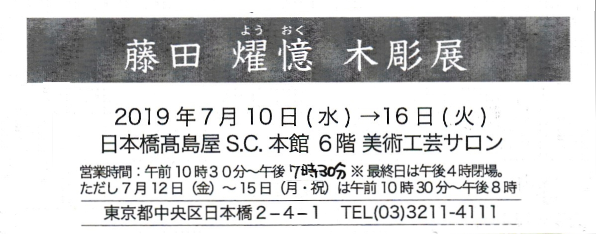 仏像彫刻展のお知らせ ~藤田燿憶 木彫展~