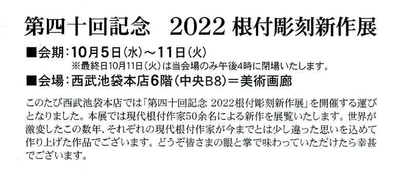根付作品展のお知らせ ~第40回記念 2022根付彫刻新作展~