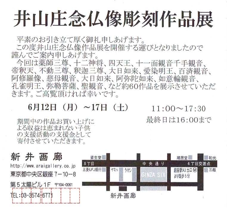 仏像彫刻展のお知らせ ~井山庄念仏像彫刻作品展~