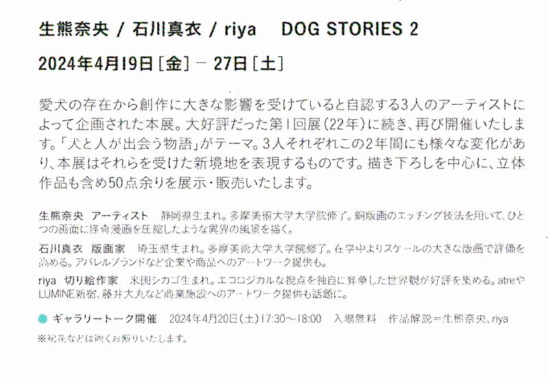 | 日 時 | 2024年4月19日(金)~27日(土)12:00~19:00(最終日18:00まで) |