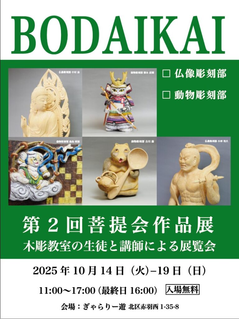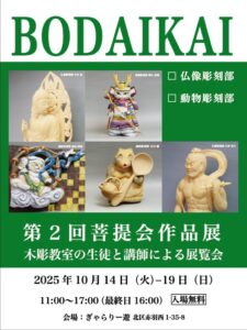彫刻作品展のお知らせ 第2回菩提会作品展 ~木彫教室の生徒と講師による展覧会〜