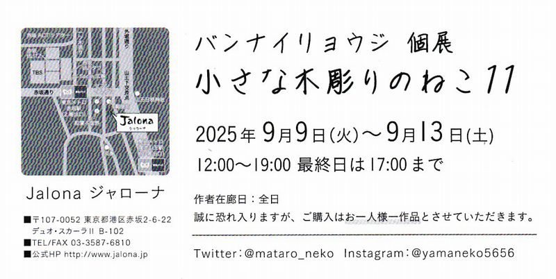 木彫展のお知らせ ~バンナイリョウジ 小さな木彫りのねこ11~