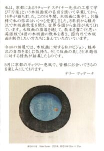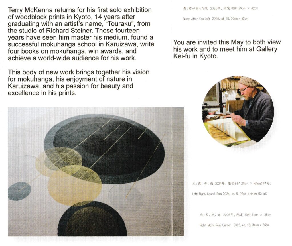 - 木版画展のお知らせ ~Terry McKenna 水紋 -suimon-~お世話になっております木版画講師・テリーマッケーナさんの個展 「水紋」が京都のギャラリーさんにて開催されます。 …