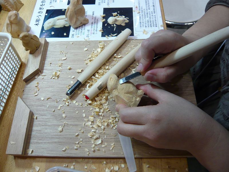 空いてるスペースで木彫に挑戦!!