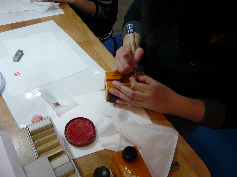 夢中で一文字を彫っています。