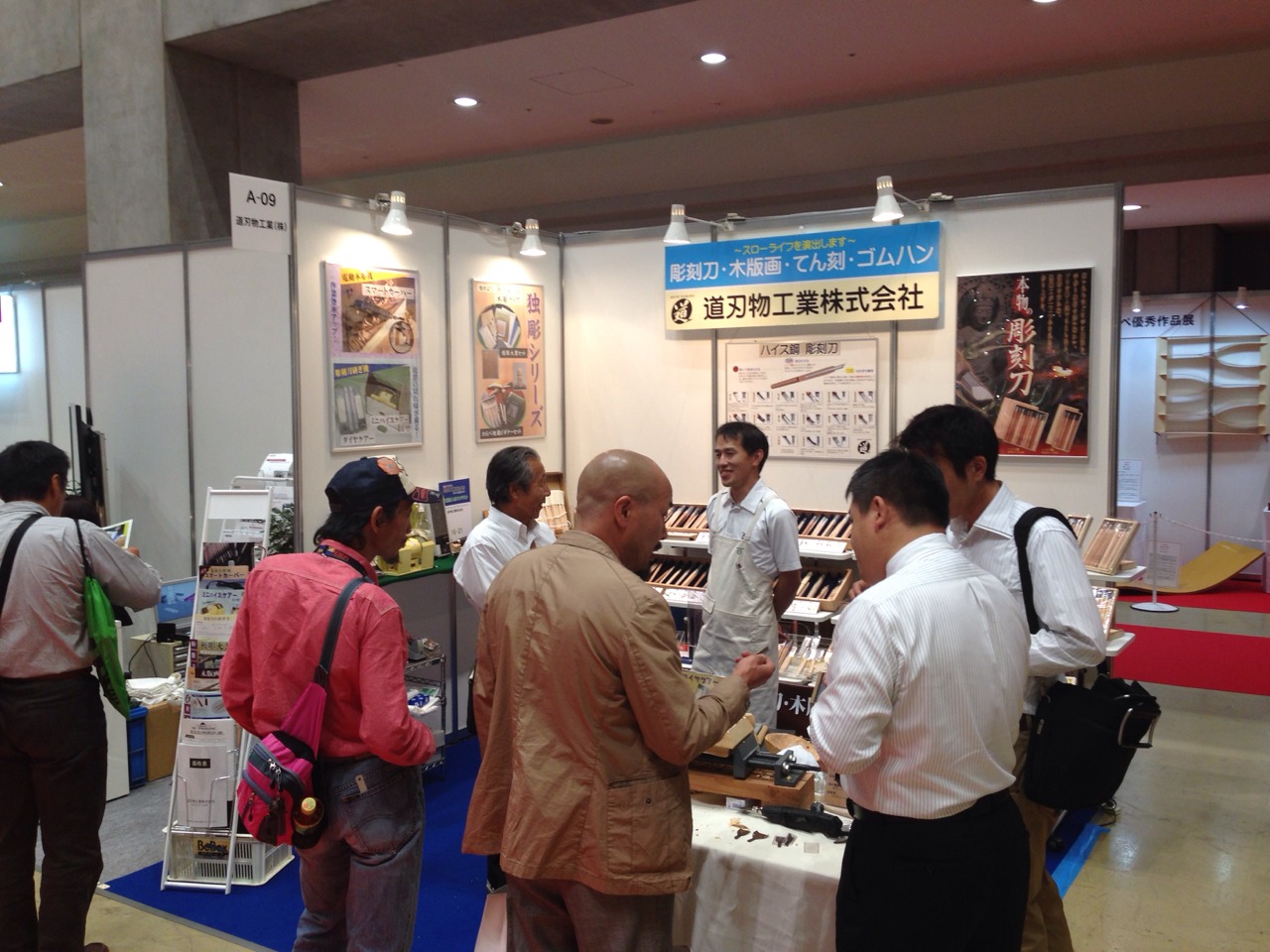木彫に必要な彫刻刀や道具類を出品。