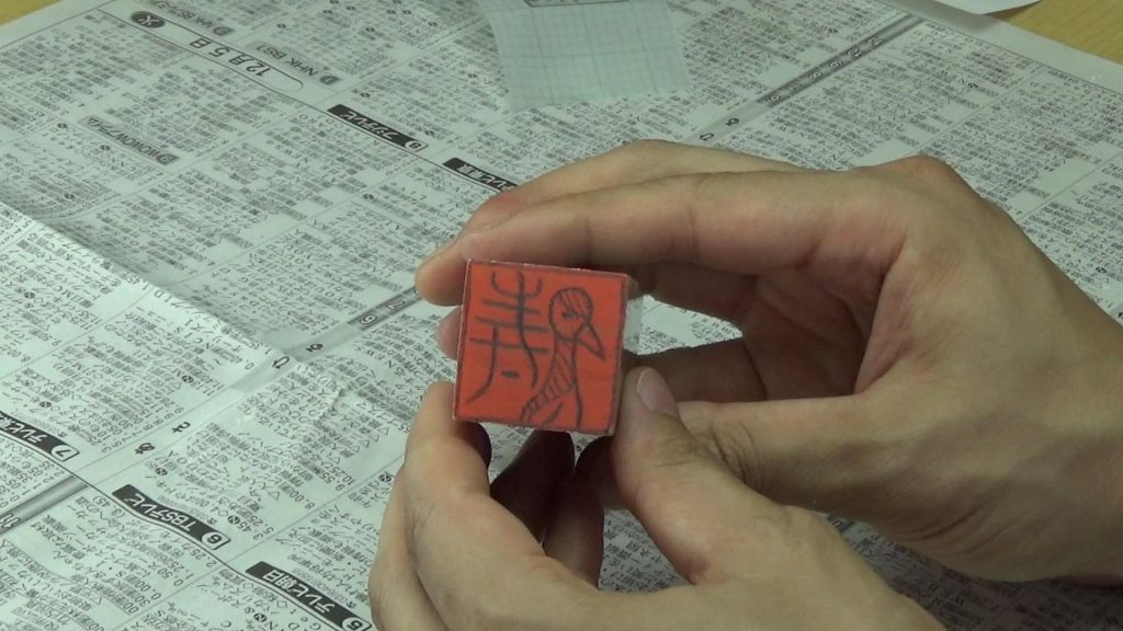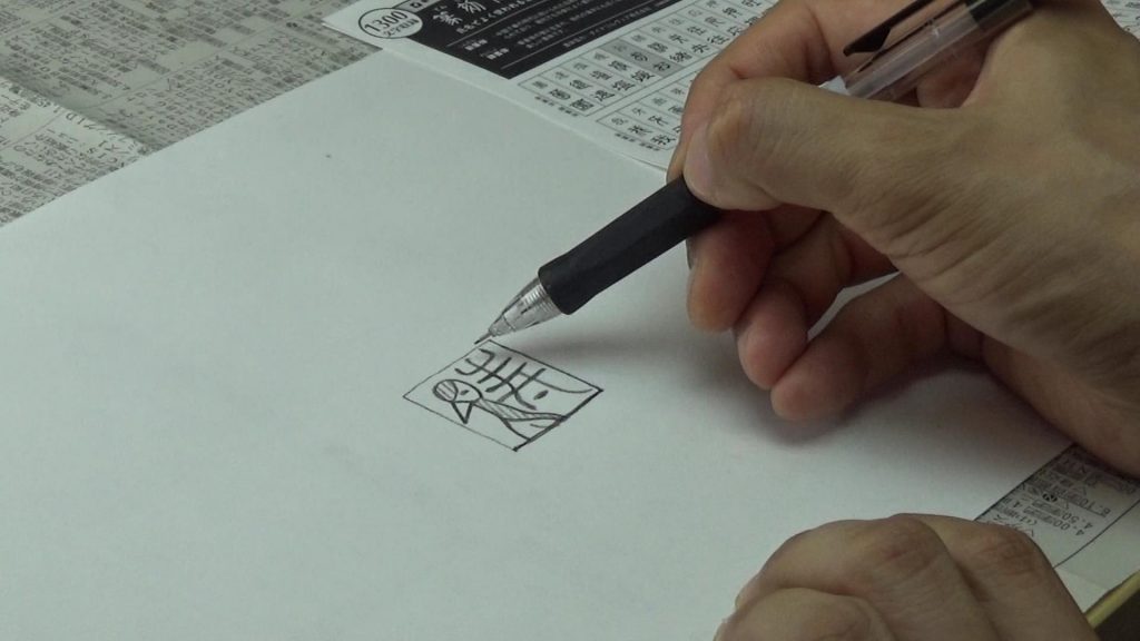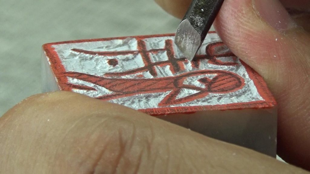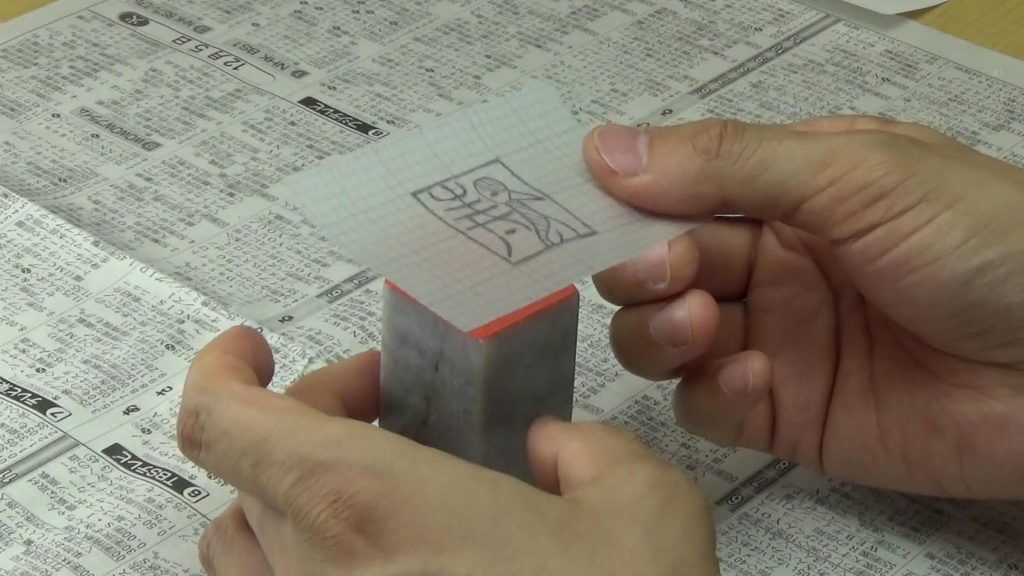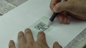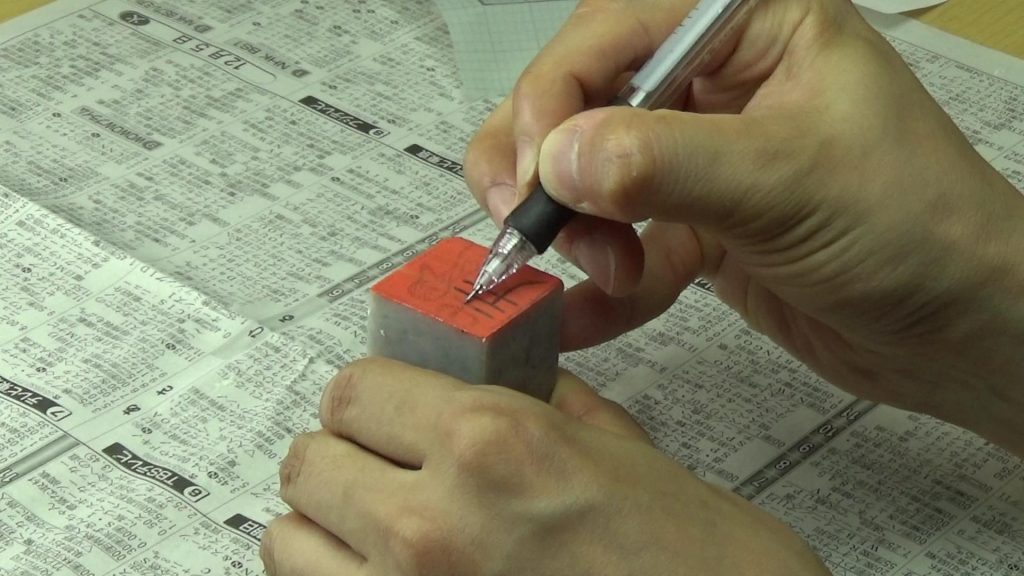 今回は朱文(陽刻ともいう)という文字の残し方。鉛筆で書いた線の部分を残していくやり方です。