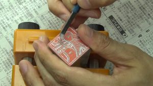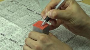これをしないと印面に余計な跡がつくということもありますが、印泥に切りくずが入るとその後にも悪影響を及ぼすので印面清掃はクセづけましょう。