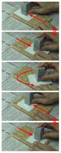 刀を持つ手もどこかに飛んでいかないように、薬指か小指を常に石に触れておきます。