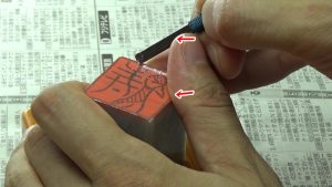 印泥をつける前に、印面についた切りくずを除去します。