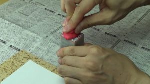 印材を外し、今回の転写のミソとなる「ポスカ」を印面に塗ります。