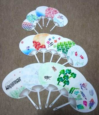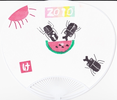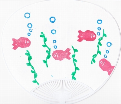 消しゴムはんこなどを押して、オリジナルのうちわが作れます!