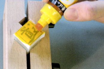 それを印面に塗って乾かし、消しゴムはんこと同じ要領で転写します。