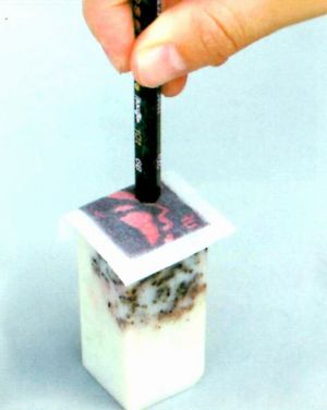 マジックインキで表面を塗りコピーのトナーインクを転写。