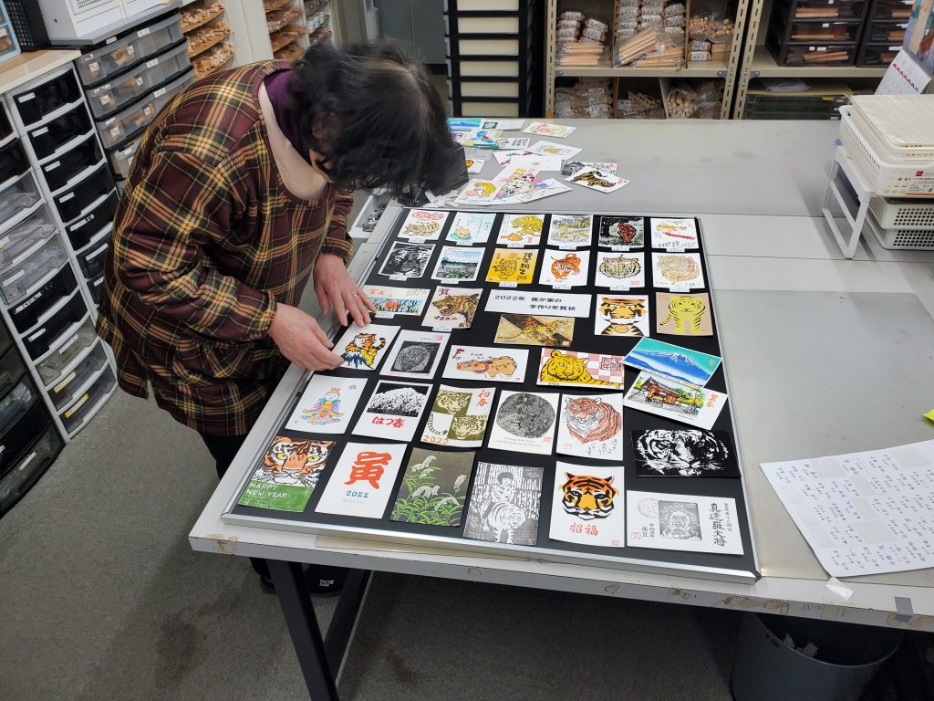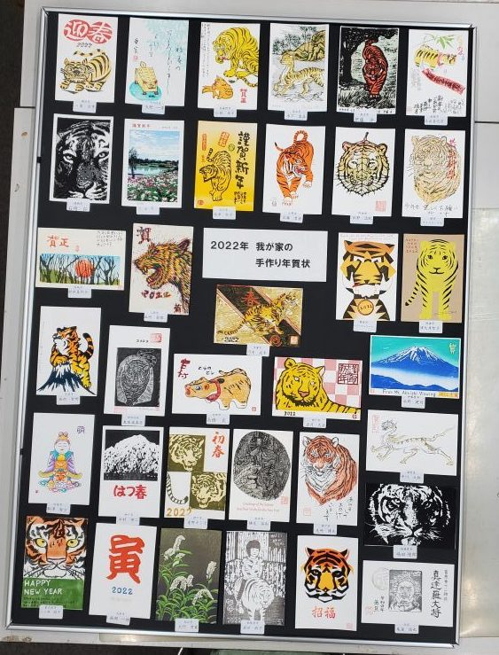 力作が勢ぞろいしており、手作り年賀状をしている方にはとても興味あるパネルですが、そんな方に披露する機会があればなーーっと少し感慨深くなった一日でした。