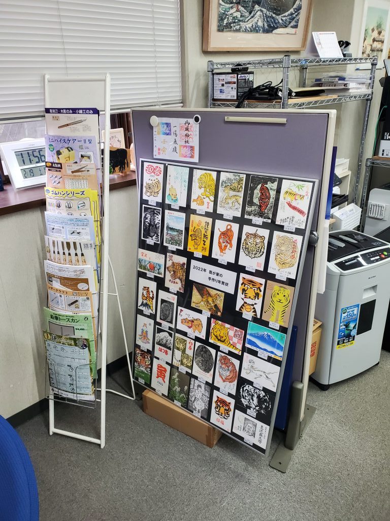 三木本社の2F展示室には近年の年賀状をピックアップして飾っています。