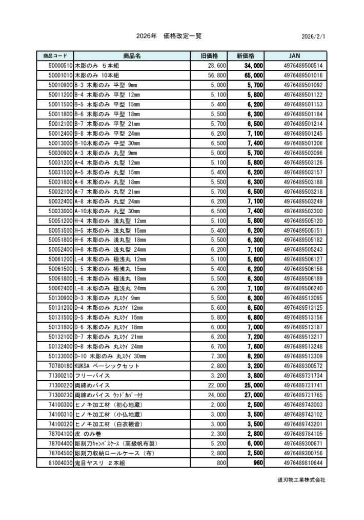 - 道刃物商品一部値上げのお知らせ いつも弊社商品をご愛顧頂き誠にありがとうございます。 さて、昨今の鋼材・木材・人件費高騰、それに加えて 急速な円安により生産コストは急上昇をしております。 弊社では懸命なコスト吸収に努めてま…