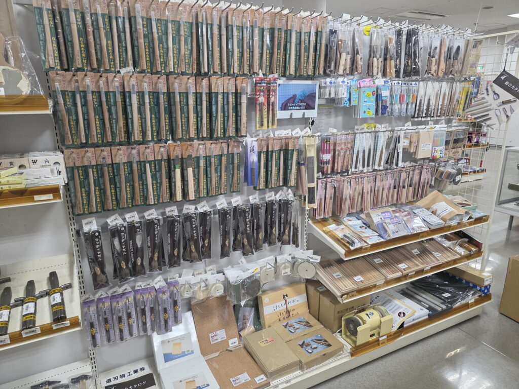 その一角に、弊社の彫刻刀も多数展示・販売されています。