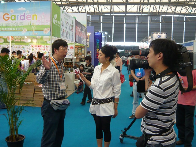金社長は上海のテレビ局から取材をうけていました。