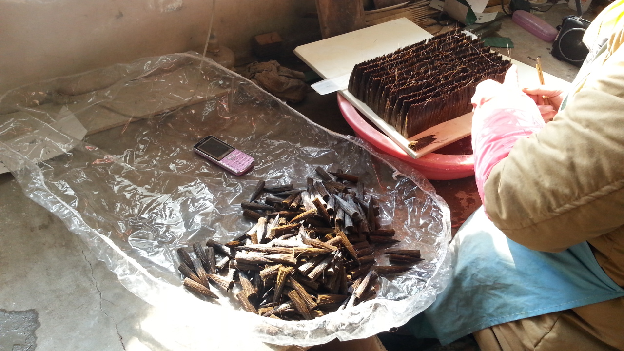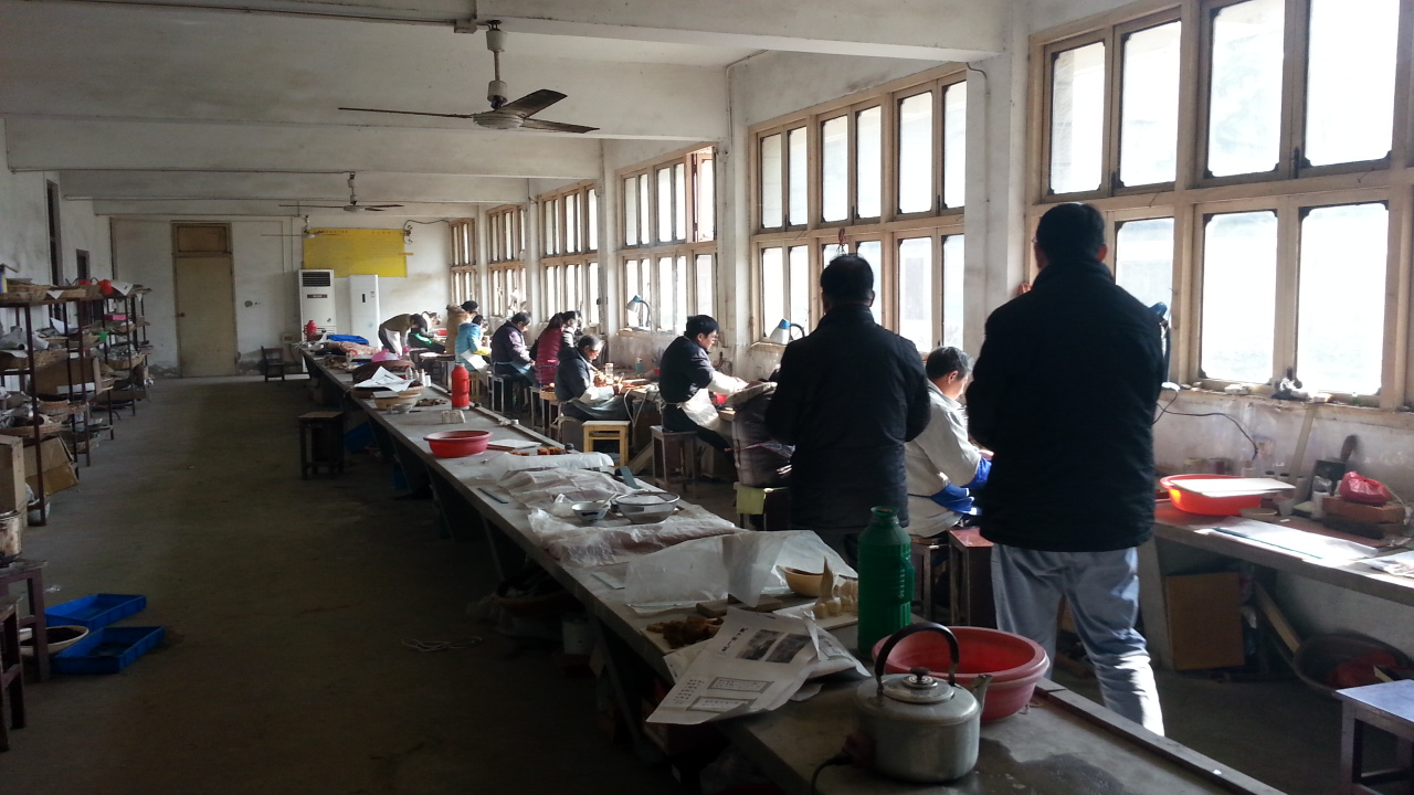 実際の筆を作っている現場を見て、体感し、検品打ち合わせ。
