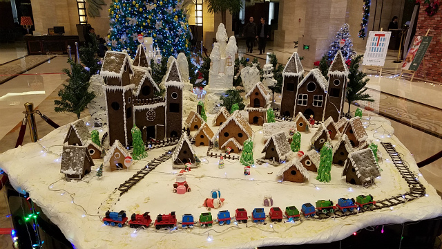 宿泊したホテルはクリスマスツリーで彩られてました。