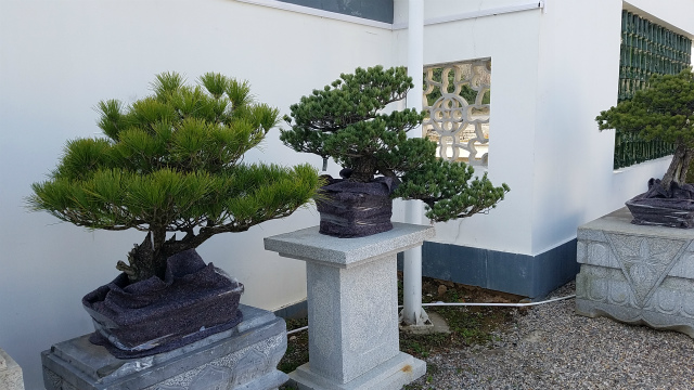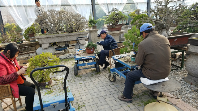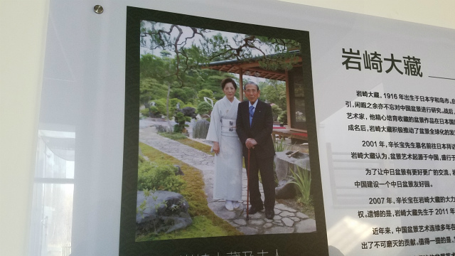 また盆栽園を見学。日中盆栽交流を促進した故岩崎氏を大きく掲示されてました。