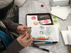 つまびきやさんご指導の下、消しゴムはんこパーツでの絵の描き方を開催。