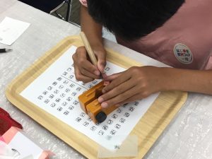 毎回恒例の一文字てん刻に挑戦。