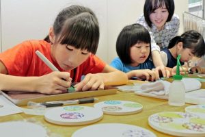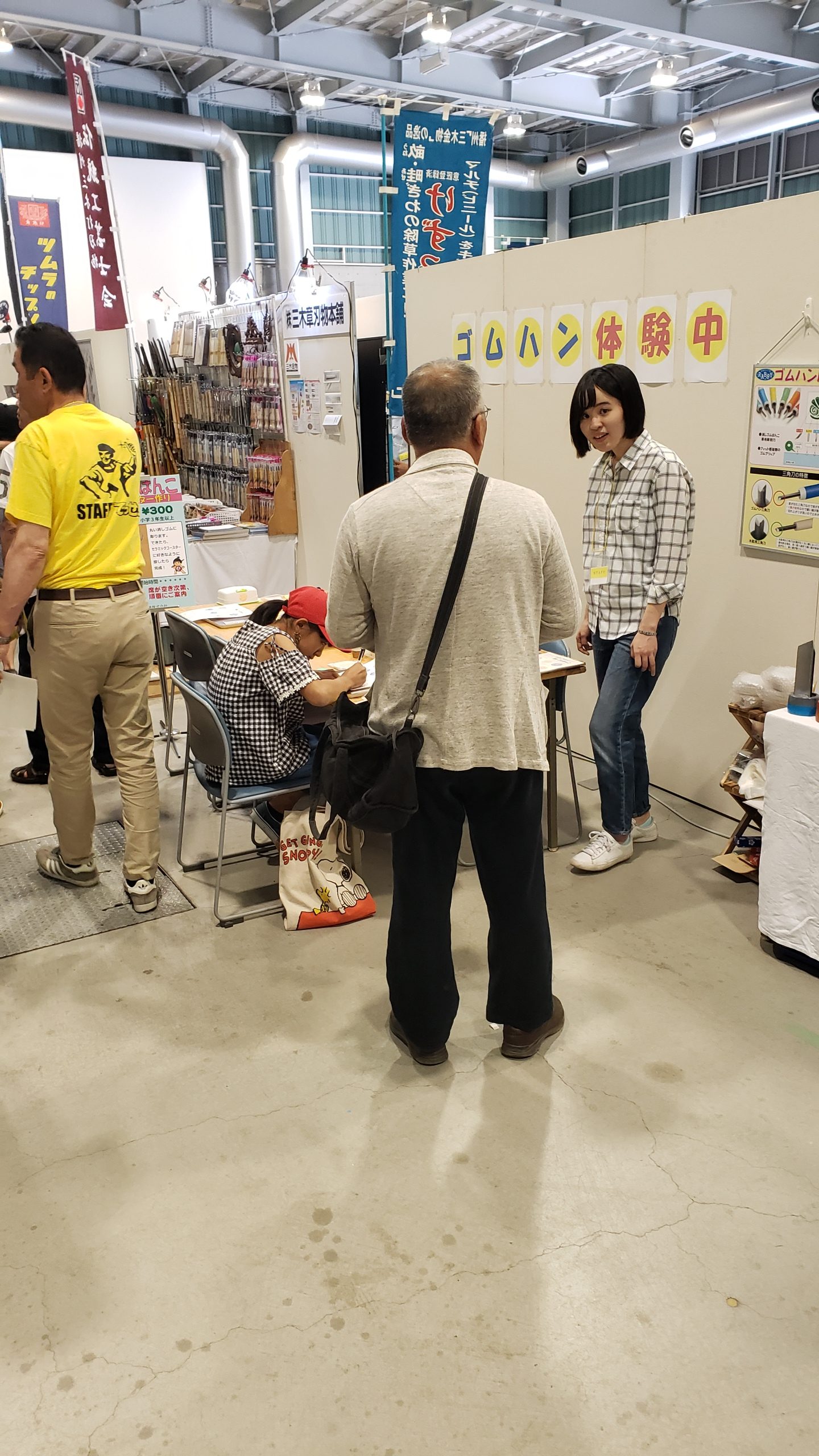 また今年ははじめてダブルワークショップとなり消しゴムはんこで作るコースターづくりを行いました。ただ彫るだけでなく、コースターにも押印することでゴムハン本来の楽しさを味わっていただきました。