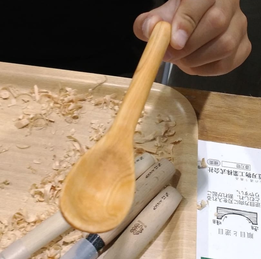 ヒノキ材をつかった木彫スプーンは今年も三木市在住の前田さんに講師を依頼しましたが各回ともに満席。親子でチャレンジする方も多いように思いました。
