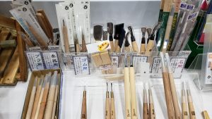 今年は意図的に数多くの彫刻刀や特殊変形刀、マイスター刃物を持参。
